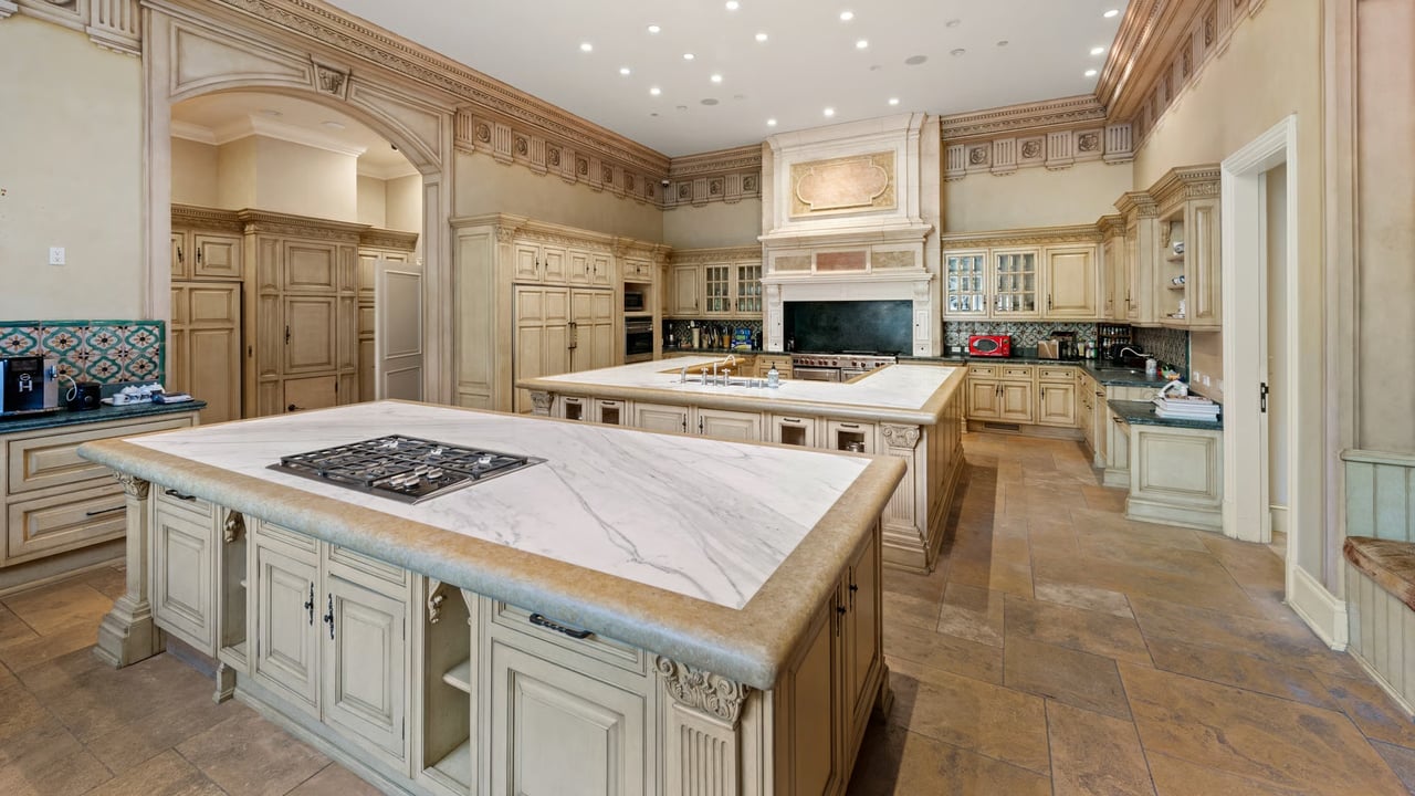 The residence itself spans approximately 53,000 square feet, offering 12 bedrooms and 25 bathrooms. The primary suite, nearly 5,000 square feet, functions as a home within a home. A 15,000-square-foot entertainment complex elevates this estate to world-class status, featuring a ballroom with stage, a 50-seat theater, bowling alley, and private discotheque. Additional amenities include a chef’s kitchen, Moroccan-inspired retreat, Turkish-style spa, 10,000-bottle wine cellar with tasting room, and a 24-car garage with capacity for 150 vehicles.